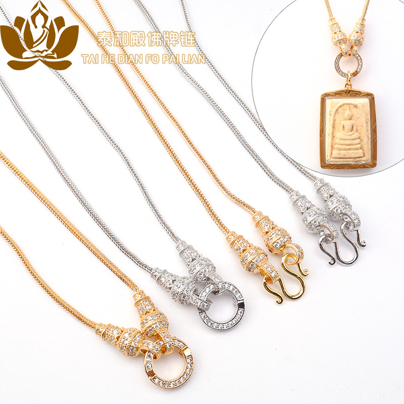 Thailand New Style Buddha Brand Chain Gold Plated Micro Diamond High-end Fashion Long Jade Necklace Universal Buckle Woolen Chain