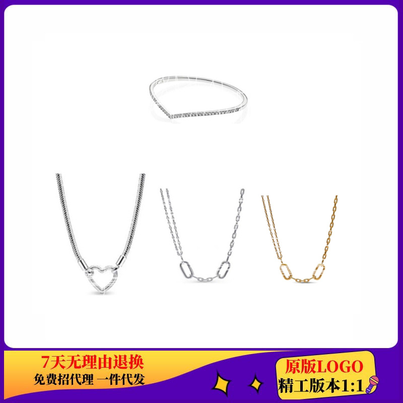 Panjia White Copper Silver-Plated Diamond Classic Bracelet Heart Necklace Spliced Two-Color Necklace