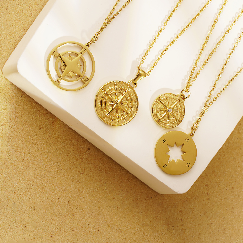 European and American Personalized Retro Compass Necklace for Women Simple Stainless Steel Compass Small Round Pendant Clavicle Chain Jewelry