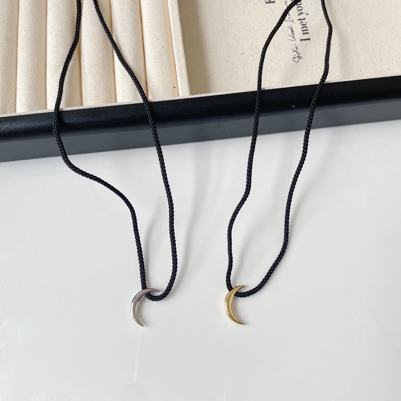 Kashite S925 sterling silver South Korea Korean style fashionable commuter personality Moon Crescent black rope elegant necklace necklace for women