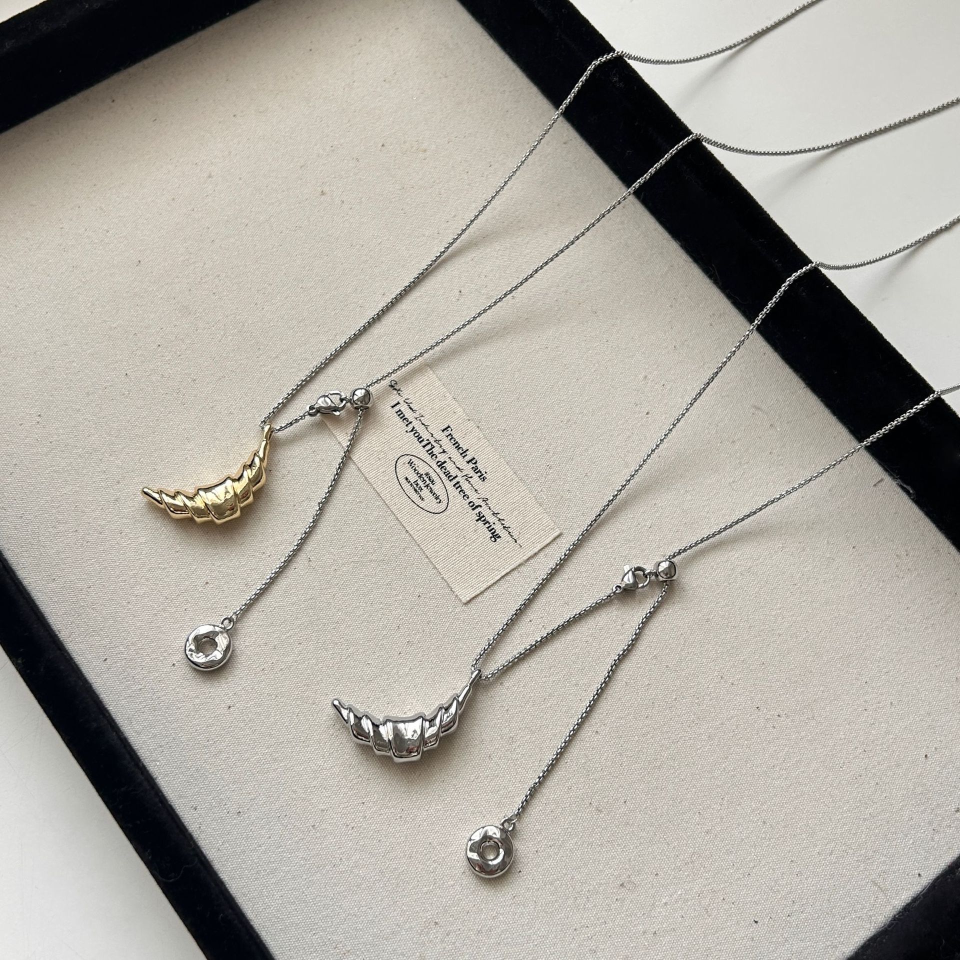 Korean Minimalist Croissant Donut Pull-Out Long Necklace for Women, Light Luxury Niche High-End Sweater Chain Accessory