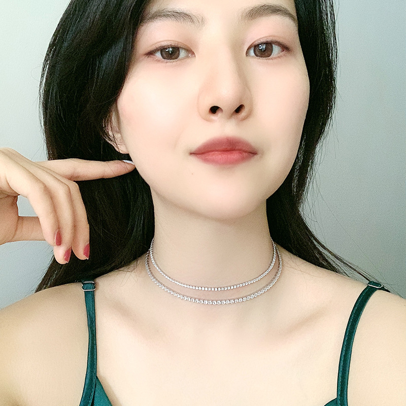 S925 Silver Zircon Full Diamond Necklace Checker Single Versatile Necklace Design Niche Short Chain Not Color