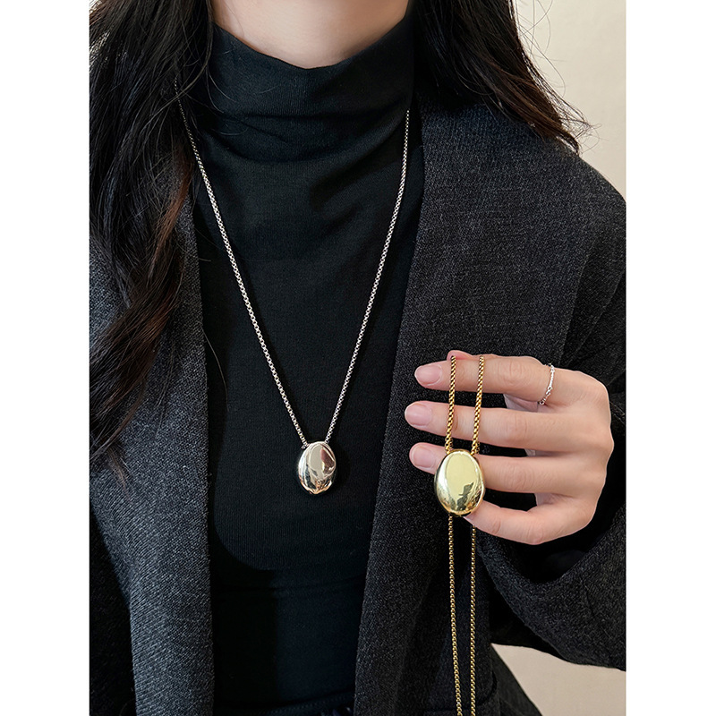 Simple Metal Oval Pendant Necklace Women's Ins Cold Style Long Woolen Chain 2025 New Style Personalized Accessories