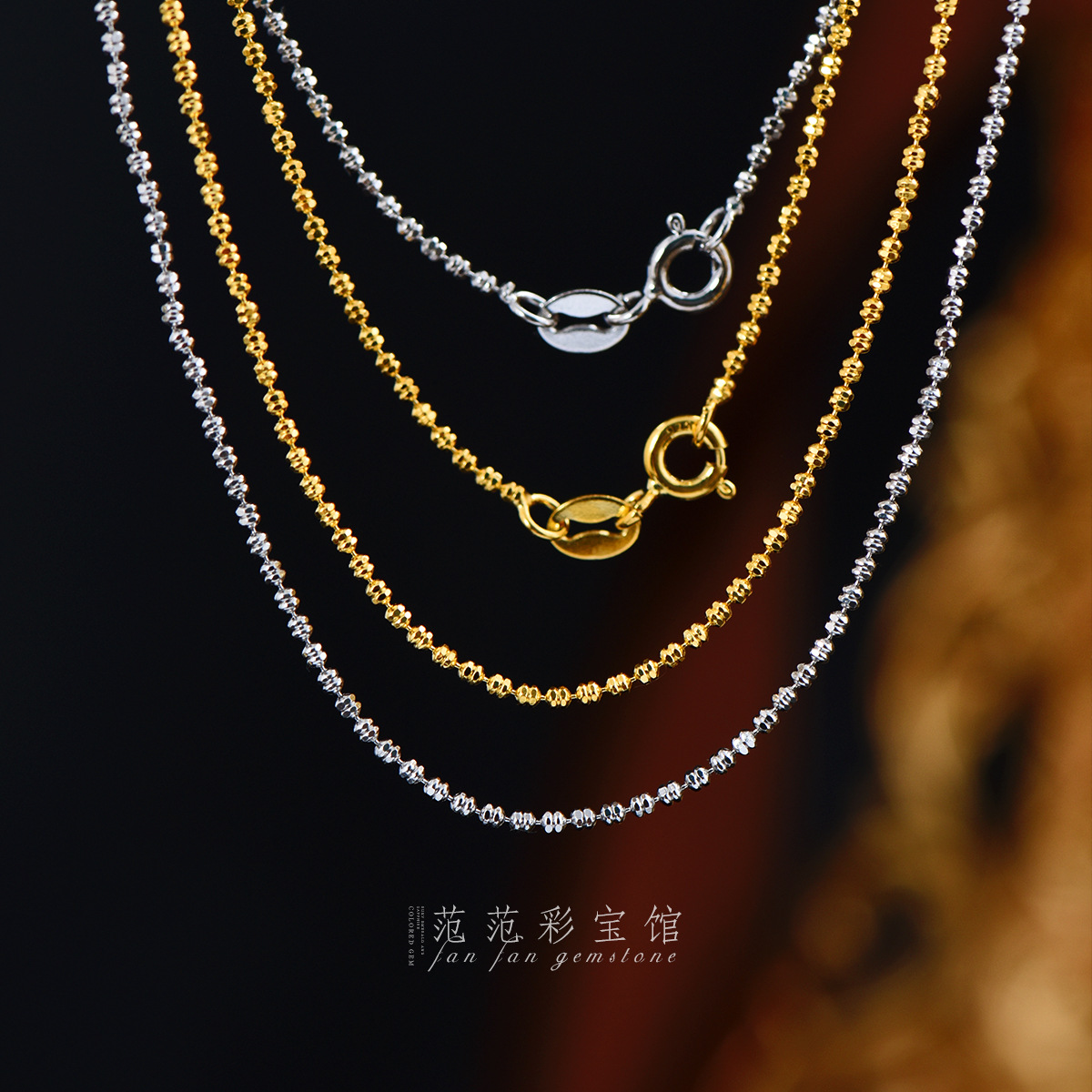 T003 sterling silver diamond chain S925 silver diamond flash laser bead necklace plain chain simple temperament versatile Y