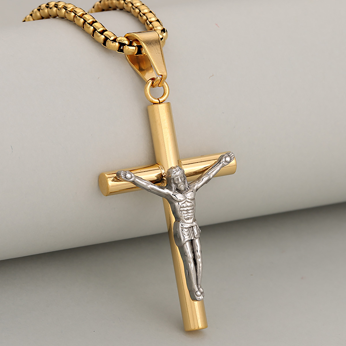 European and American Cross-Border Supply Amazon Best-Selling Fashion Hip-Hop Retro Men's Gold-Plated Stainless Steel Cross Pendant