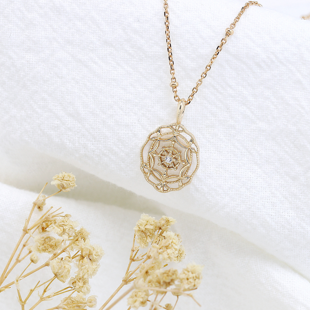 Huang Jin Jewelry Japanese Vintage Star Hollow Zircon Egg Pendant agete New 925 Sterling Silver Plated 14K Gold