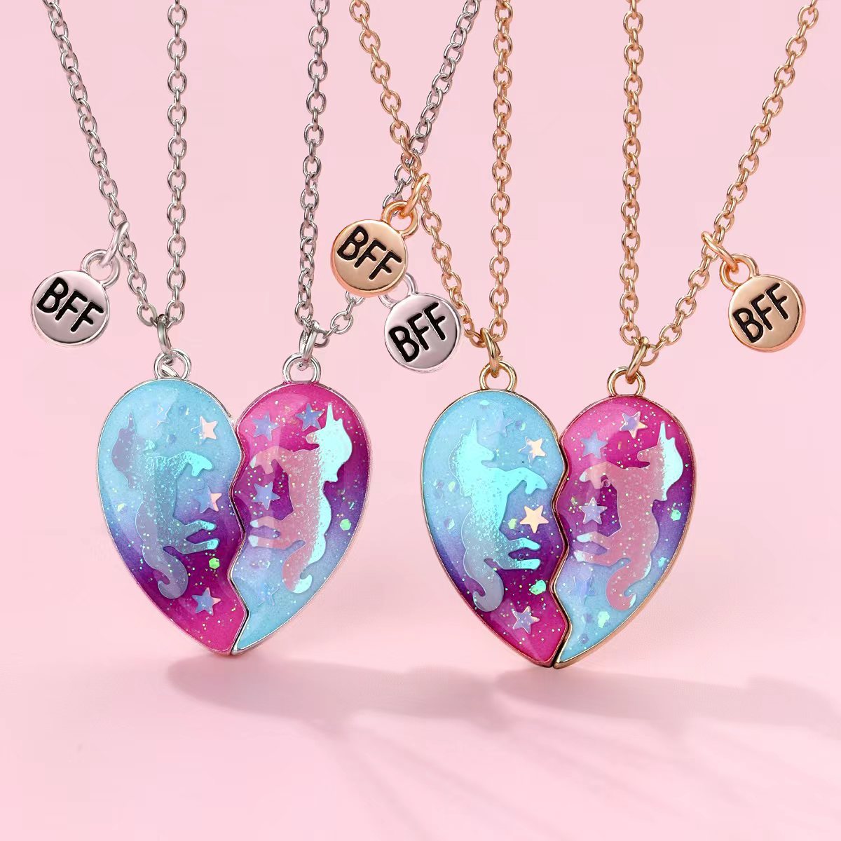 Cross-border hot selling children's necklace simple love good friend alloy oil drop magnetic necklace girlfriends two first jewelry