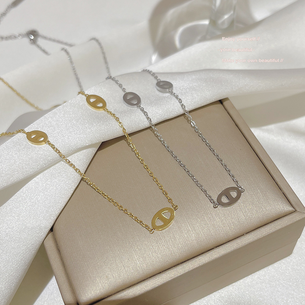 Fashionable Simple Pig Nose Necklace Light Luxury Niche Light Luxury High-end All-match Daily Short Titanium Steel Clavicle Chain for Women