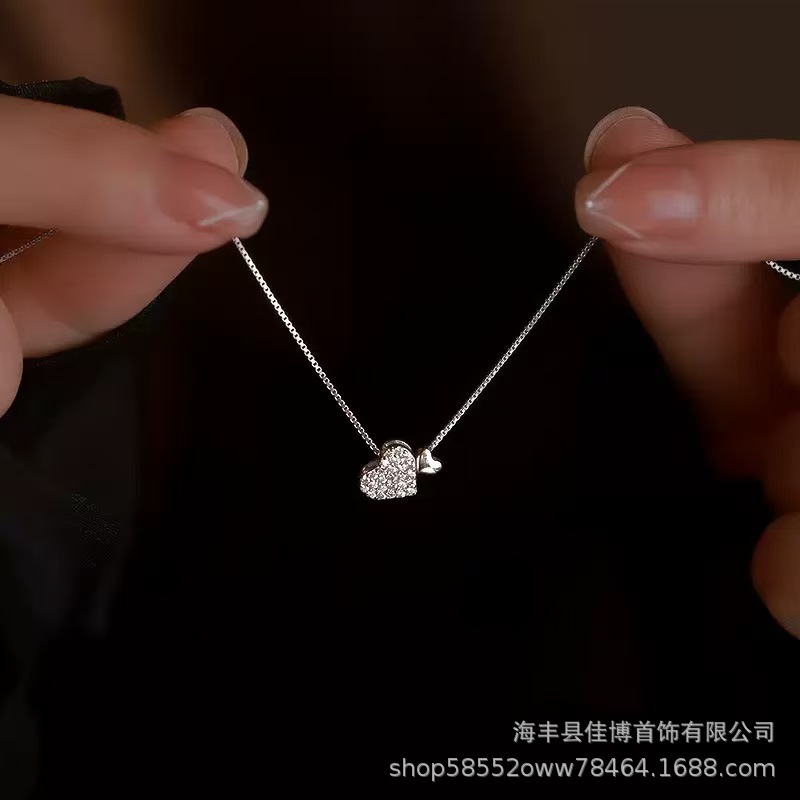 Cross-border AliExpress s925 sterling silver love necklace light luxury niche design ins cute simple clavicle chain wholesale