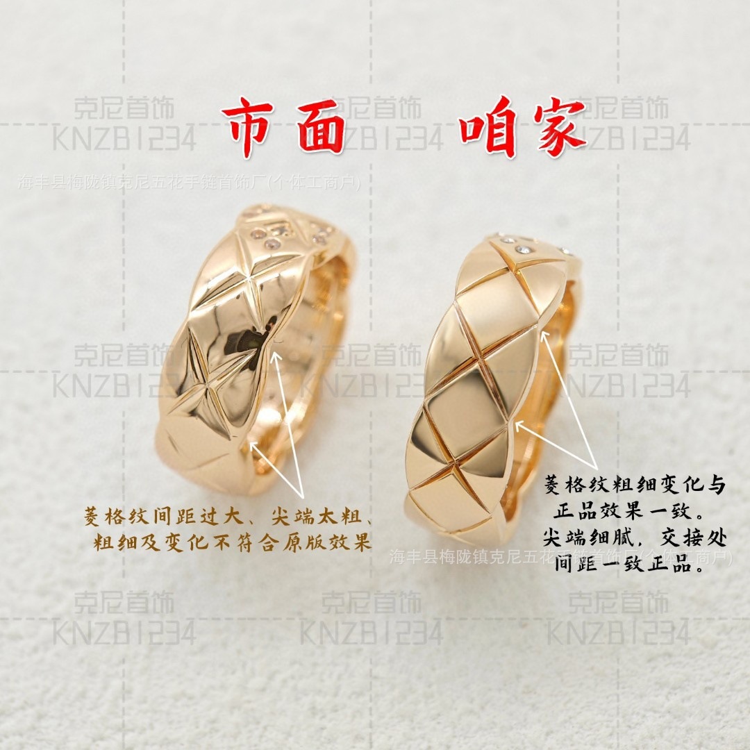 Coco Diamond Pattern Ring Silver Plated with 18K Gold Ins Stackable Wide and Narrow Versions Chanel Style Couple Rings Couple Models
