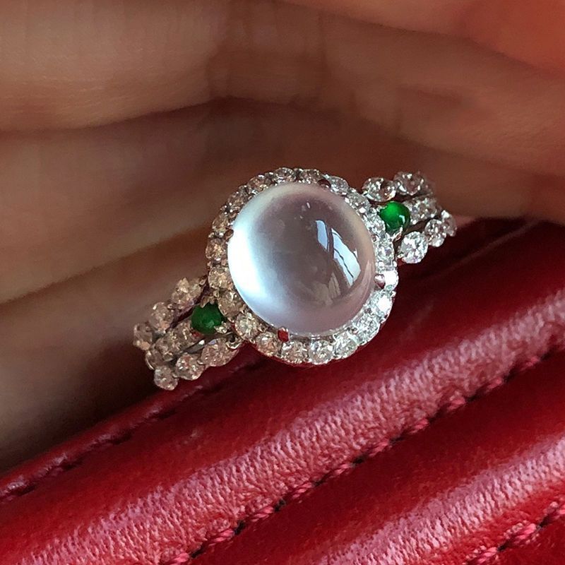 High-end Internet celebrity imitation chalcedony Jade steel light ice lace ring elegant plated S925 silver elegant luxury exquisite