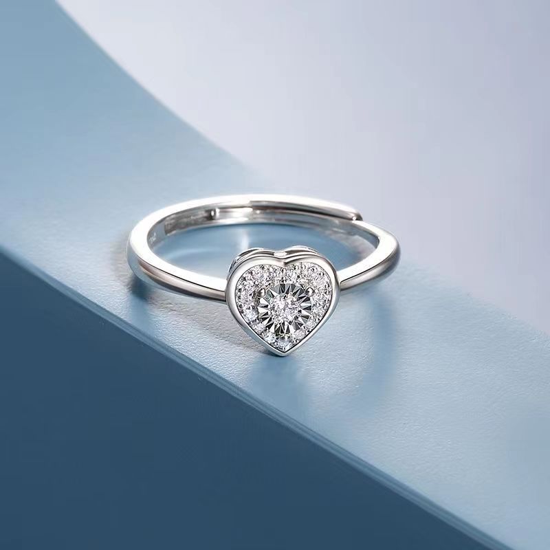 Japanese and Korean style noble heart-shaped diamond ring for women new silver heart-shaped diamond ring proposal wedding diamond ring for women