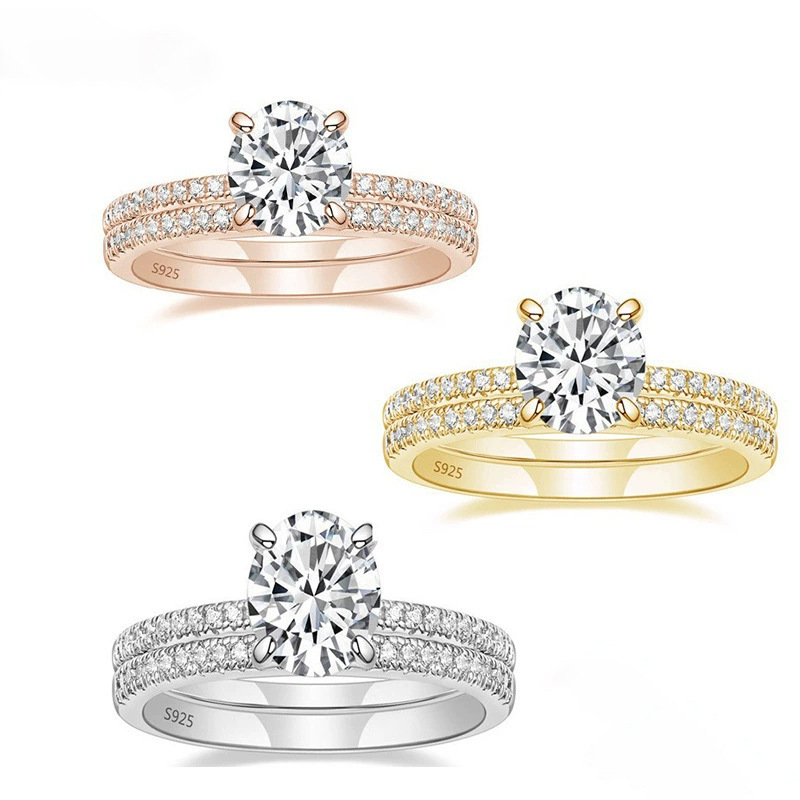 European and American jewelry S925 four claw set 1.2 karat 7mm round zircon suit ring in stock wholesale