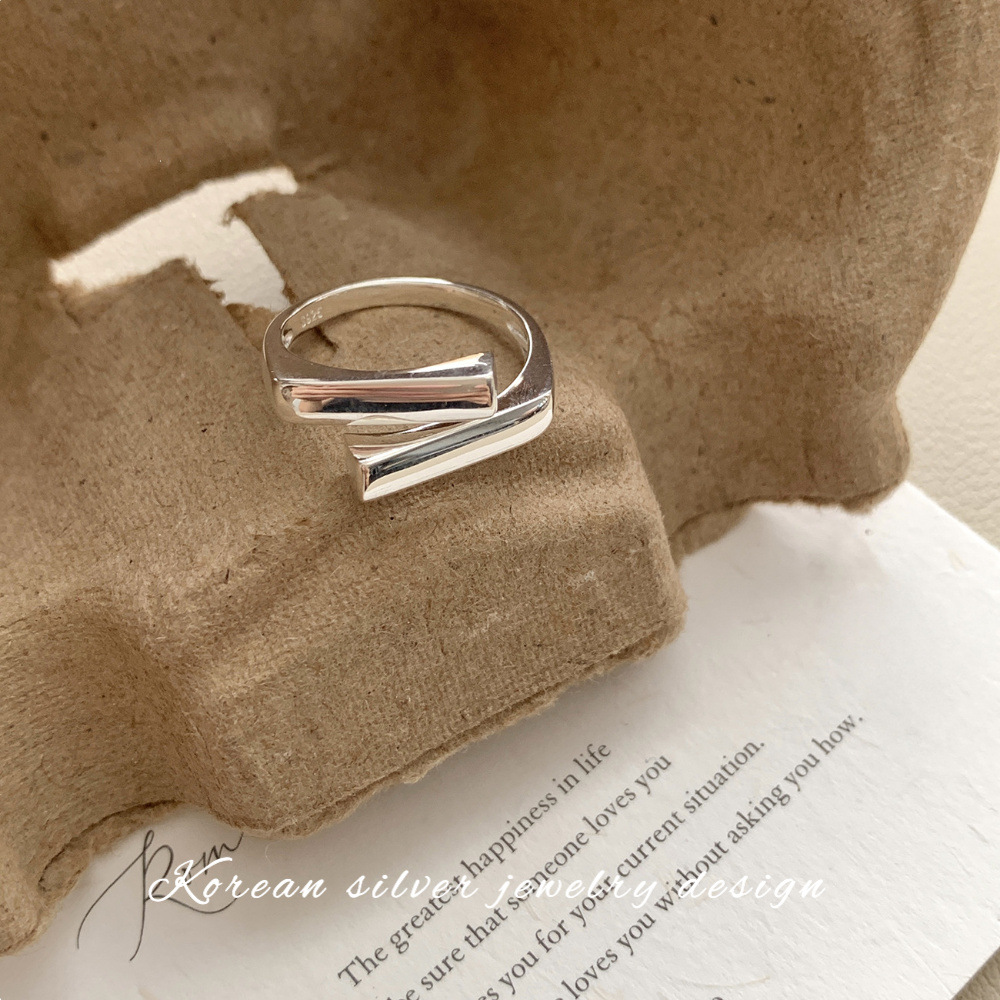 S925 Sterling Silver Geometric Cross Long Square Ring Women's Korean Style Open Adjustable Dieting Ring Personalized Light Luxury Jewelry
