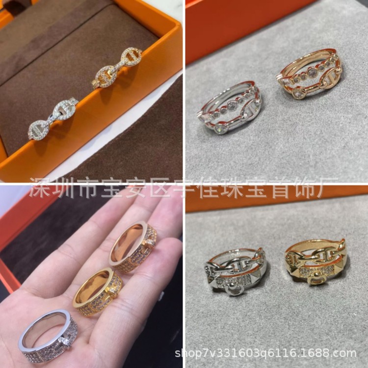 Cross-Border High Version Pig Nose Cowhide Ring 18K Rose Gold Plated Pig Nose Ring H Couple Ring European and American