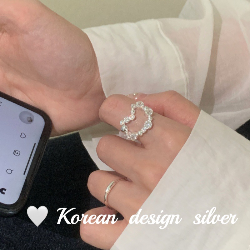 Korean Version 2025 Autumn and Winter New Light Luxury Ring S925 Sterling Silver Sparkling Hollow Heart Zircon Splicing Ring High-End