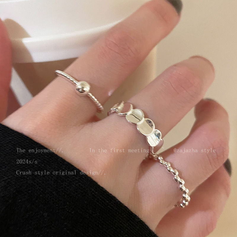 Minimalist Round Splicing Ring for Women, Korean Style, Light Luxury, High-End, Cool Style Index Finger Ring, Niche Design, Fashionable Ring