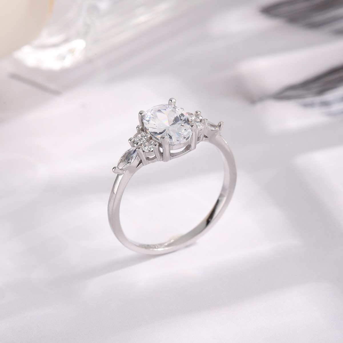 Amazon S925 Silver Women's geometric ring Mori light white ring European and American simple design women's ring