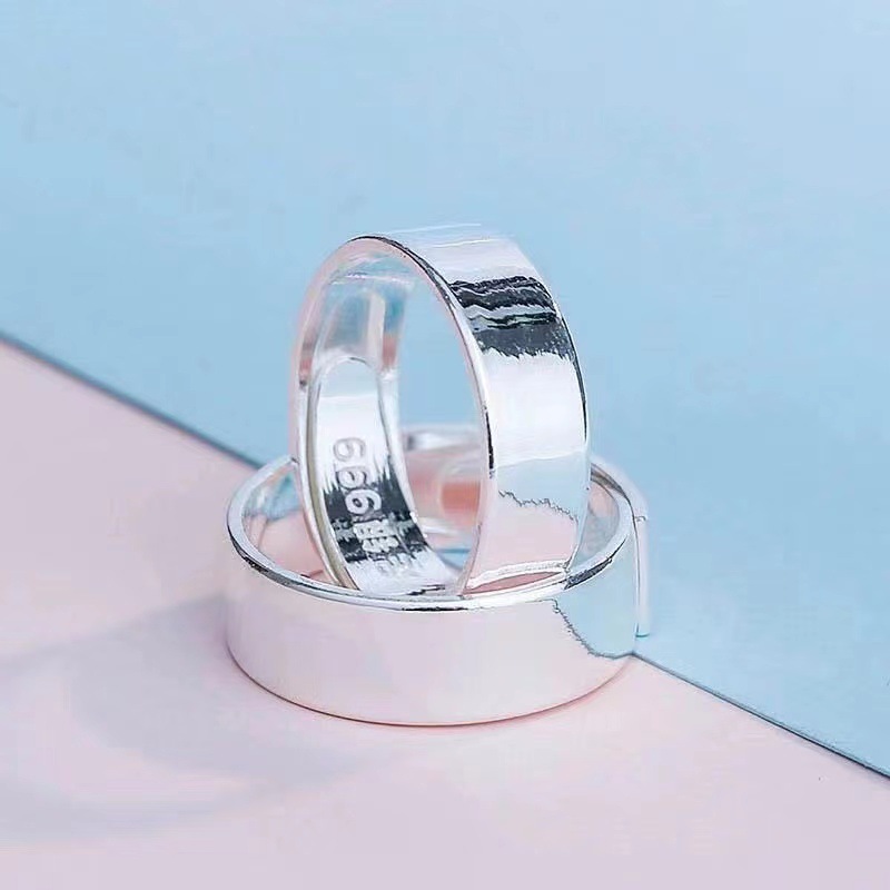 New 999 silver flat smooth open ring couples ring fashion Korean men and women a generation of hair
