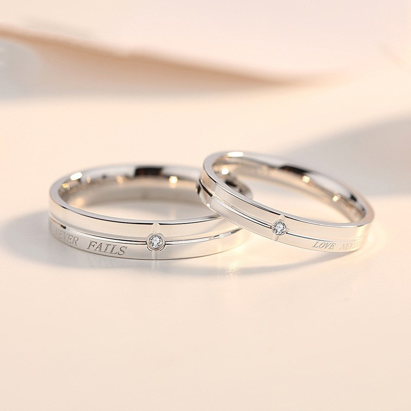Touching the True Heart Couple Ring Sterling Silver Men and Women Open Brushed Diamond English Simple Proposal Wedding Ring