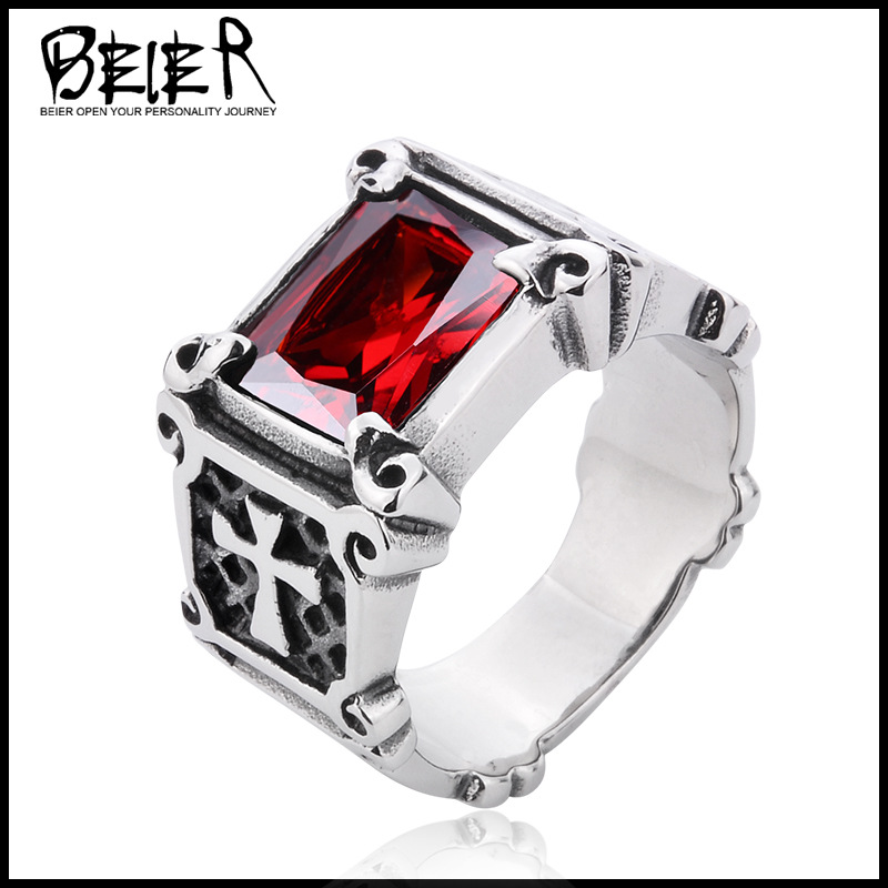 beier fashion jewelry wholesale European and American retro men's Thai silver style ring titanium steel inlaid zircon ring