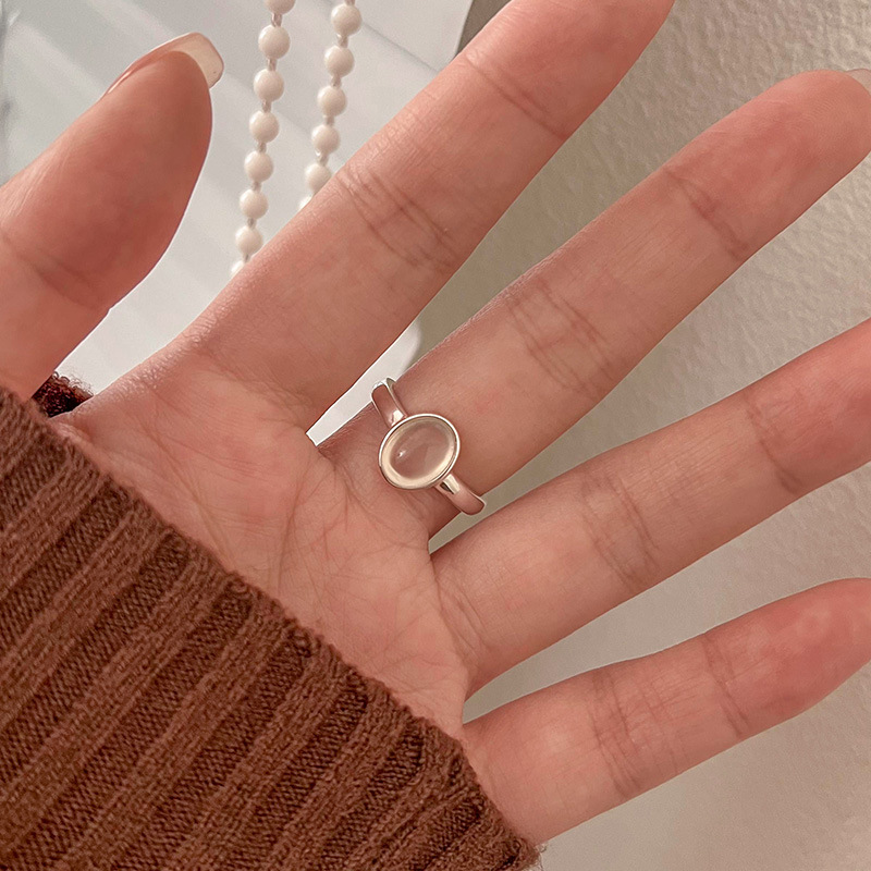 S999 Pure Silver Korean Style Simple Frosted Texture Uneven Moon Ring Women's High-End Versatile Accessible Luxury Ring