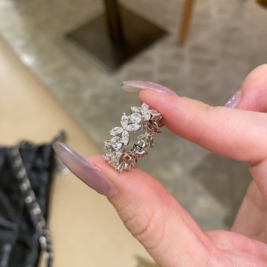 Light Luxury S925 Sterling Silver Marquise Diamond Ring for Women, Full Diamond Row, Exquisite, Elegant, Versatile, Trendy Style, Closed Ring, Live Broadcast