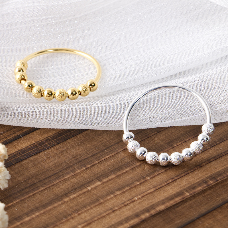 Amazon European and American S925 Sterling Silver Ring Simple Frosted Rotatable Stress Relief Anxiety Ring Cross-border Silver Ring for Women