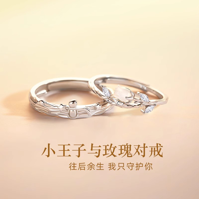 S925 Sterling Silver Little Prince and Rose Couple Ring, Romantic, Elegant, Niche Elegant, Versatile and Fashionable Couple Ring