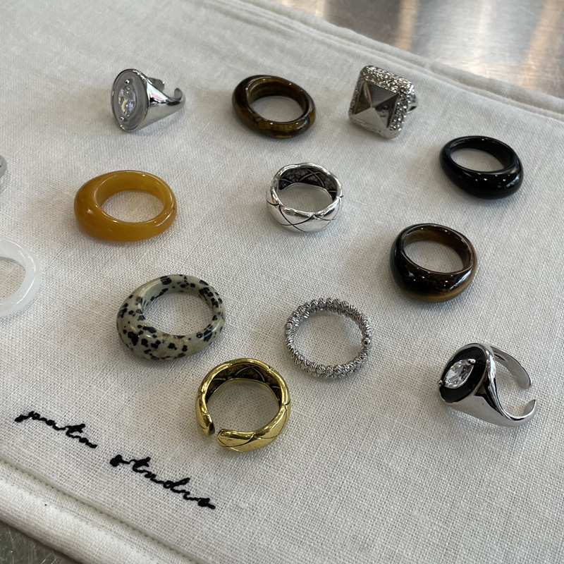 Natural Stone Tiger Eye Crystal Ring Niche Advanced Sense Minimalist Personality Wide Index Finger Stacked Ring