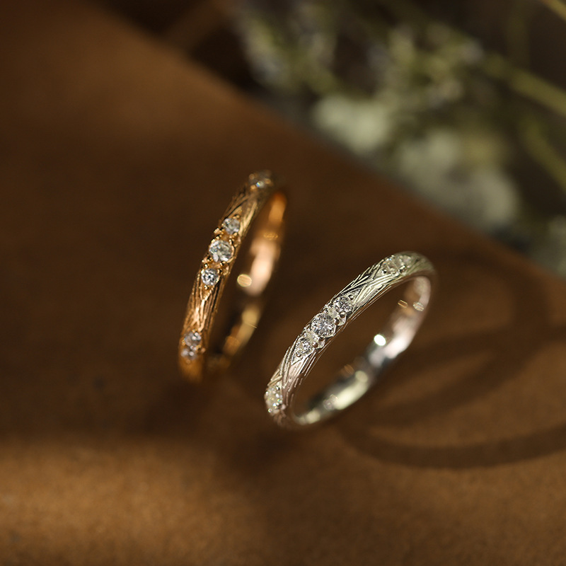 Japanese style light luxury new s925 silver gold-plated Star flashing diamond-embedded small Diamond brushed texture ring stacked ring