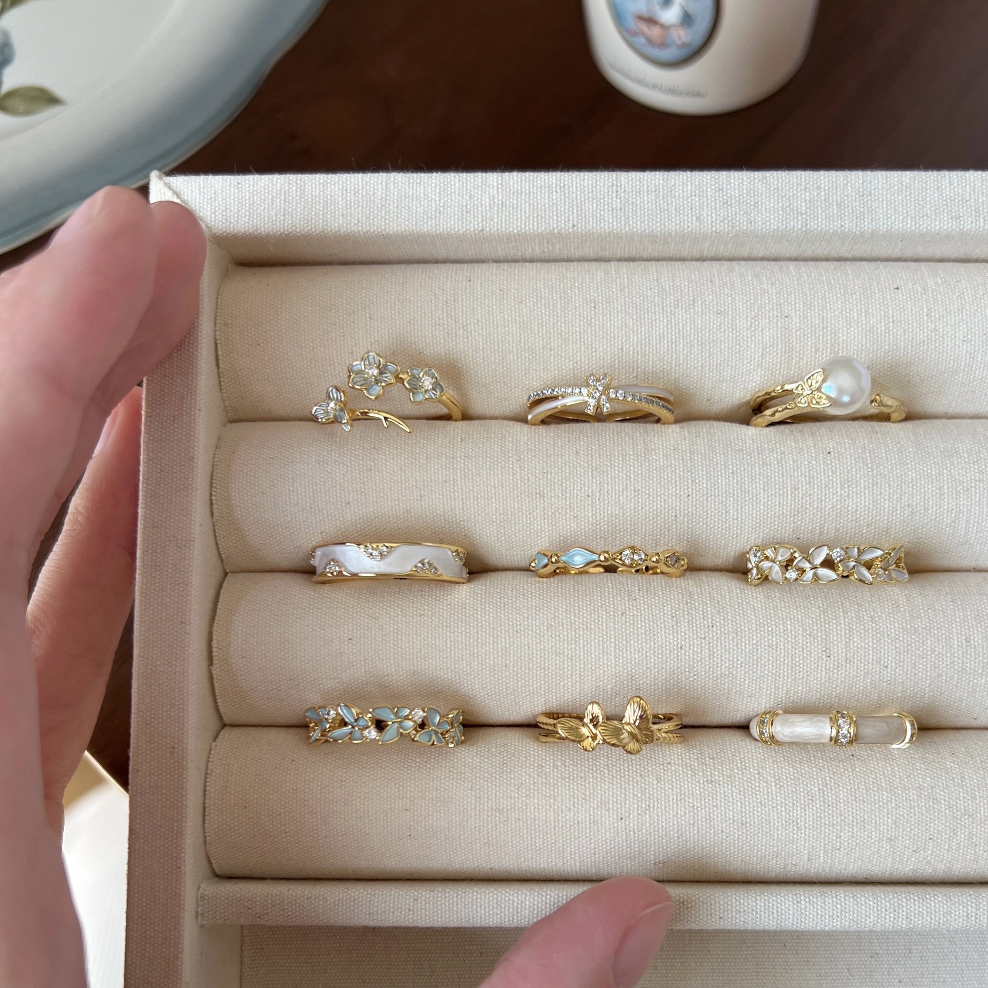 Japanese and Korean Style Real Gold Plated Color-Preserving Open Simple Zircon Ring Adjustable Colored Zircon Diamond Ring Wedding Ring Versatile Ring Wholesale
