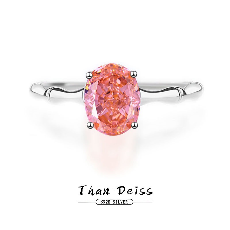 Pigeon Egg Padparadscha Ring for Women S925 Silver High Carbon Diamond Ice Flower Cut Zircon Design Ring Live Broadcast Ready Stock
