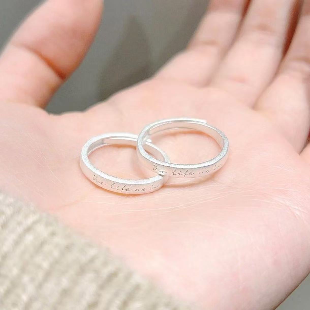 Silver Vow S999 Pure Silver Love Letter Couple Rings French Style Unique Artistic Gentle Fresh Ring Jewelry Wholesale