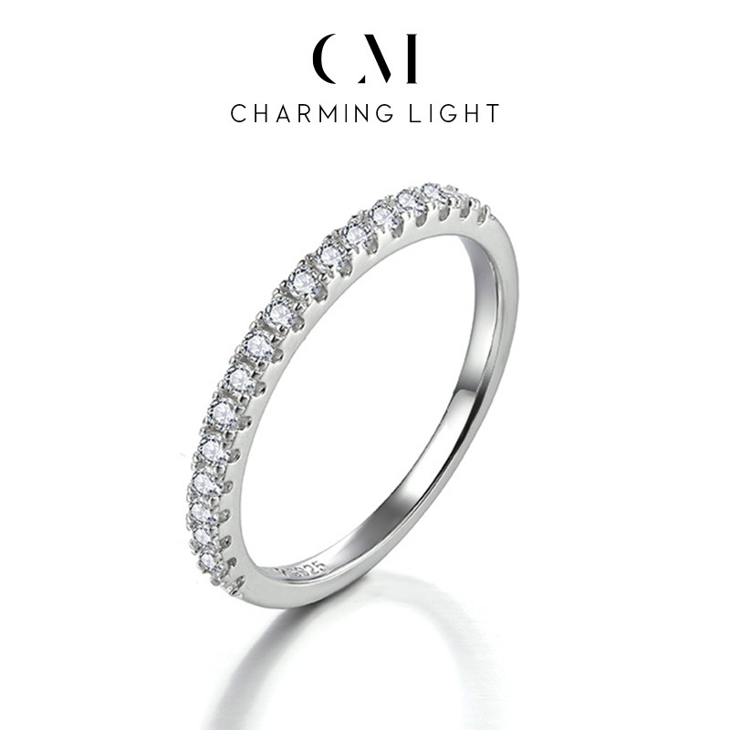 Cross-Border Hot Selling S925 Silver Half Circle Round Stone Ring Fashion Niche Simple Versatile D Color Moissanite Ring Wholesale