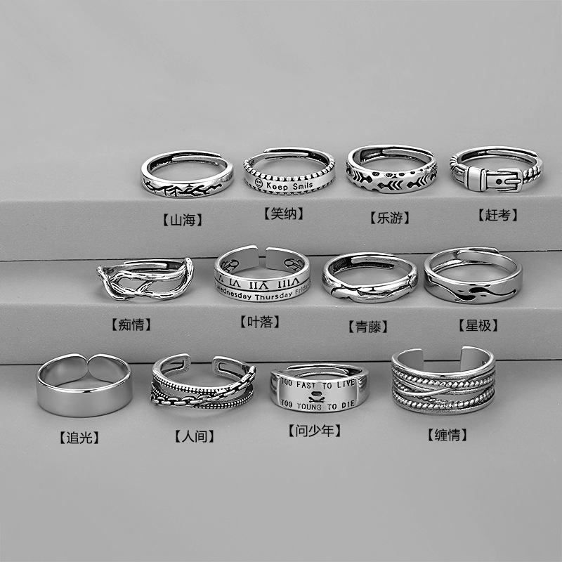 Vintage Combination Stacked Men's Ring Distressed Distinctive Trendy Single Ring Split Ring Anti-Thai Silver Laughing Ring