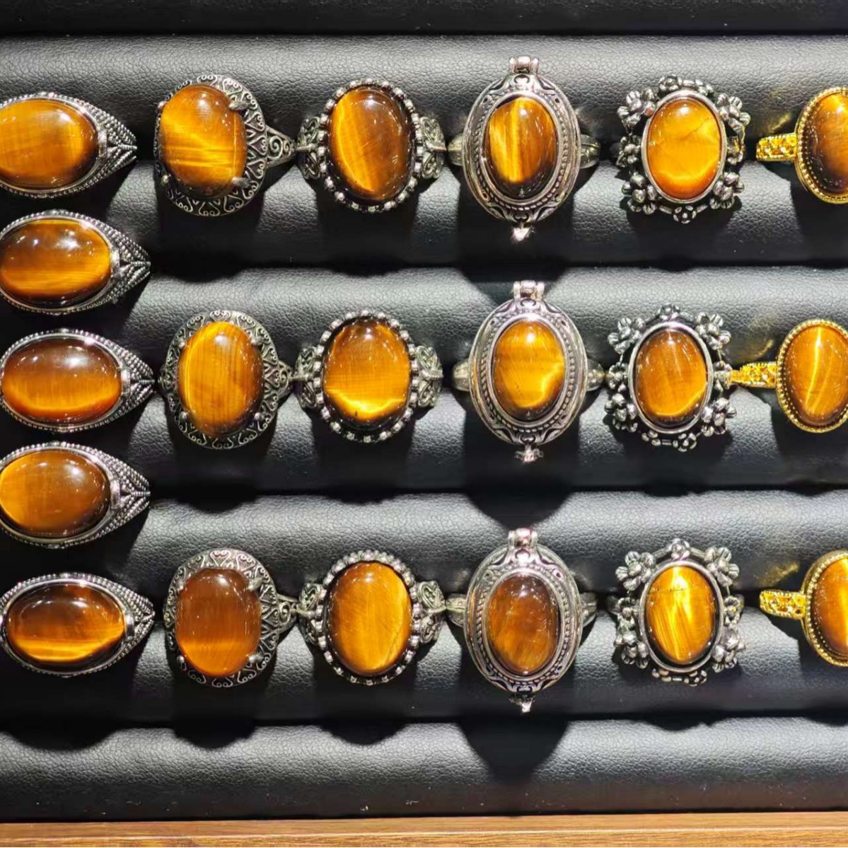 Pure Natural Tiger Eye Stone Vintage Artistic Ring Chinese Style Niche Copper Silver-Plated Adjustable Open Ring