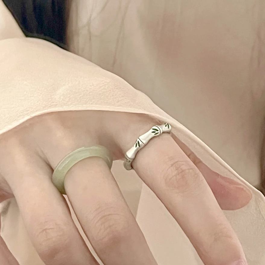 New Chinese Style Cold Wind Bamboo Open Ring Exquisite Artistic High-grade Sense Ring National Tide Cold Wind Food Finger Ring Women