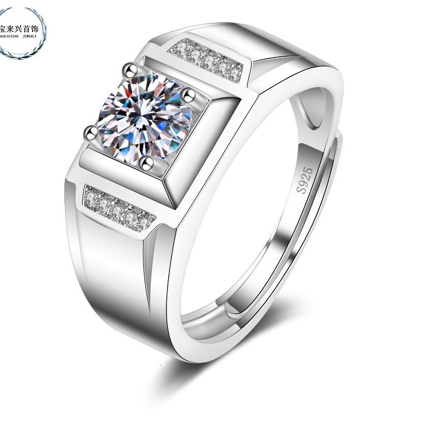 Europe and the United States best selling new silver plated men's domineering ring fashion 1 karat diamond ring men's ring direct wholesale