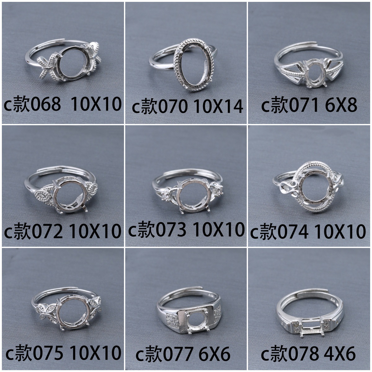 Silver Plated Ring Empty Copper Multi-size Women's Ring Silver Ring Open Claw Inlay Simple