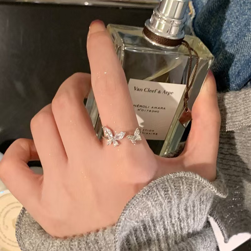 Double Butterfly Ring for Women, Unique and Delicate, Minimalist Style, Index Finger Ring, Gentle and Sweet Temperament, Open Ring for Ladies, Diamond