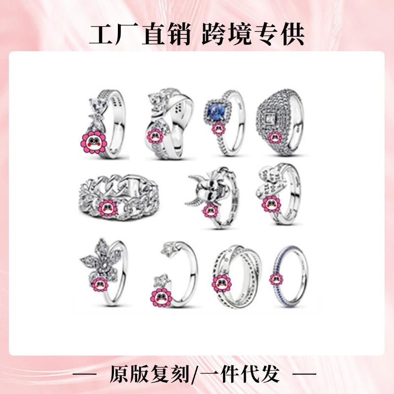 Panjia's New Product S925 Silver Ring Is Inlaid with Sparkling Starlight Bow, Fashionable and Exquisite Women's Ring, Cuban Chain Pair of Rings
