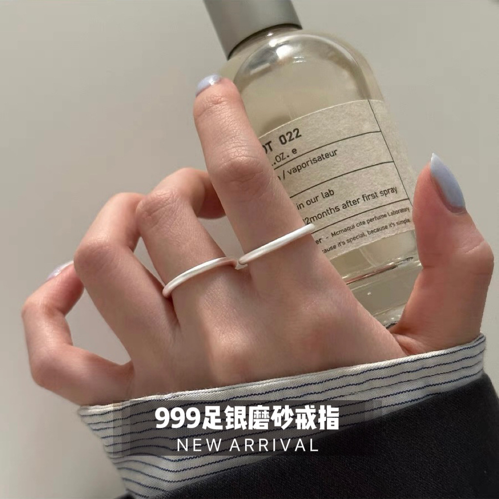 S999 Pure Silver Frosted Matte Ring for Women and Men, Plain Silver Tail Ring, Ins Fashion Personality Birthday Gift