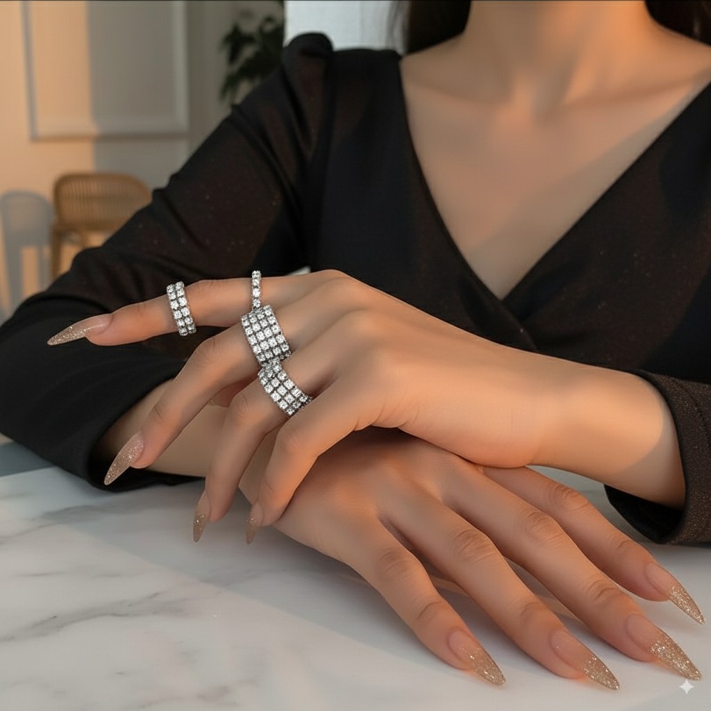 Versatile Bridal Colored Diamond European and American Cross-Border Multi-Row Diamond Ring Ring New Elastic Rhinestone Ring Versatile for Women