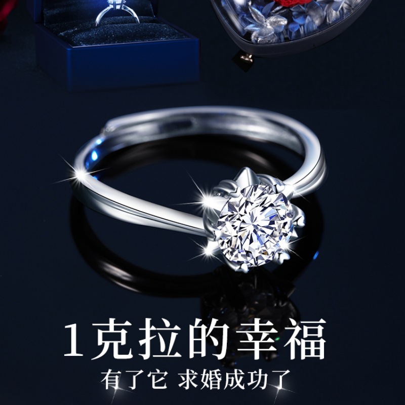 High carbon stone diamond ring couple wedding ring sterling silver pair simulation order proposal ceremony on-site fake ring