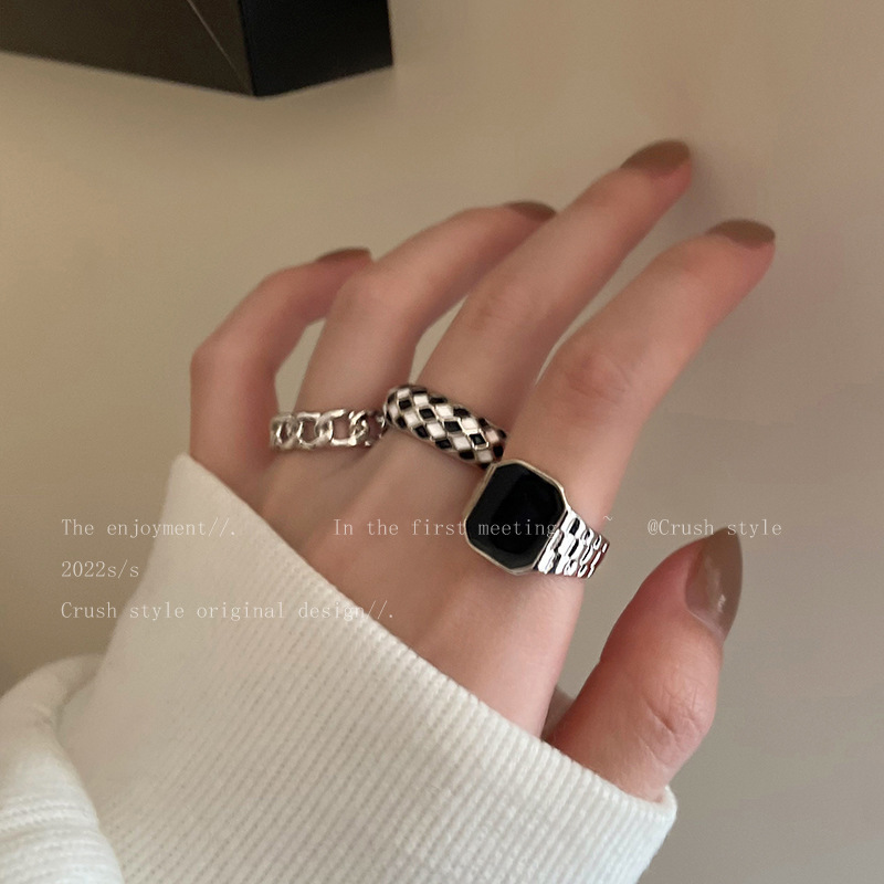 Bright Chessboard Glaze Ring suit Women's Autumn and Winter Niche Design Cold Style Finger Ring Fashion Personalized Ring