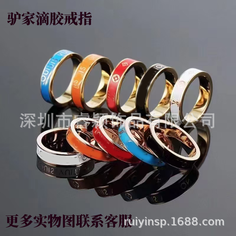 Donkey Home Resin Ring New Vintage Letter Oil Drop Enamel Ring for Women Ins High-End Fashion Titanium Steel Ring