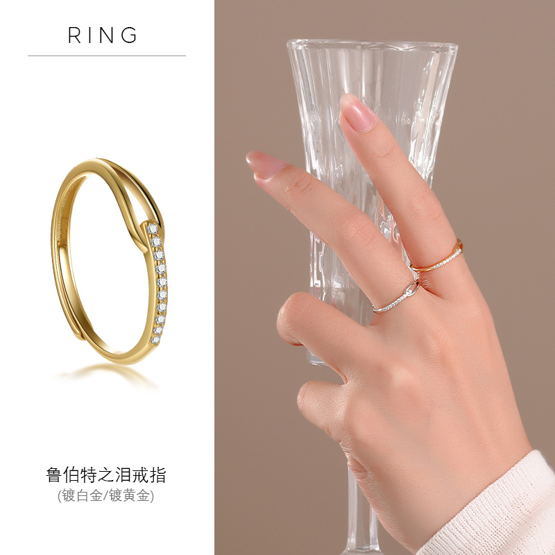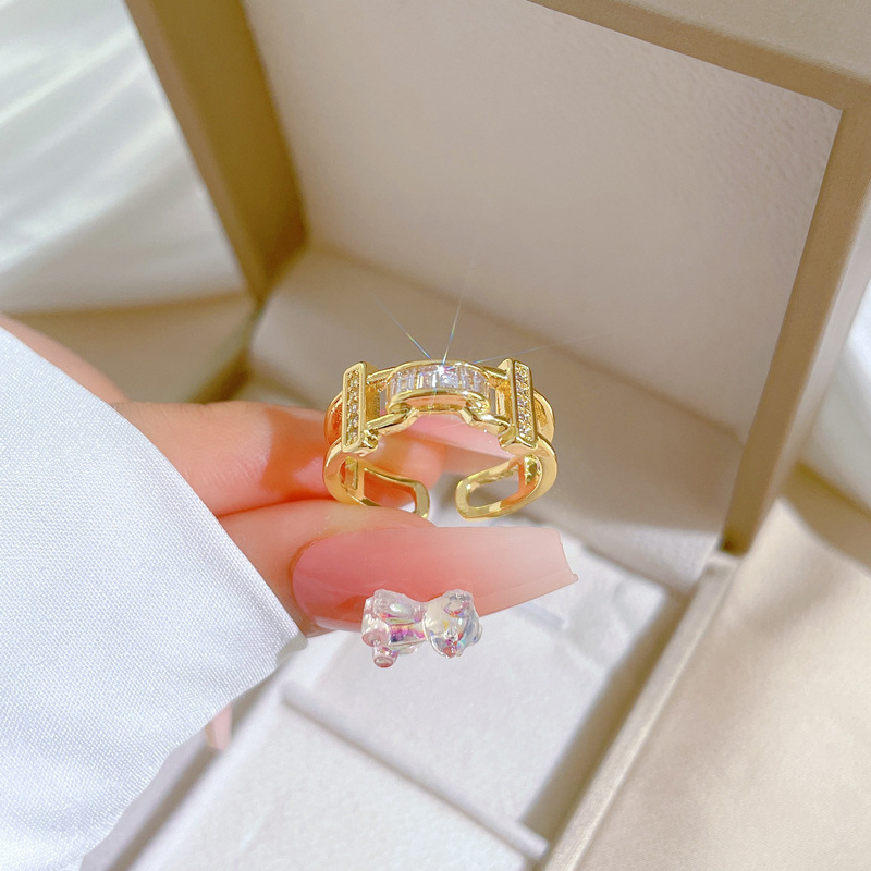 [Gold-Plated] Light Luxury Niche Zircon Ring Opening Adjustable Simple Hand Jewelry Japanese Style Ring Couple Ring