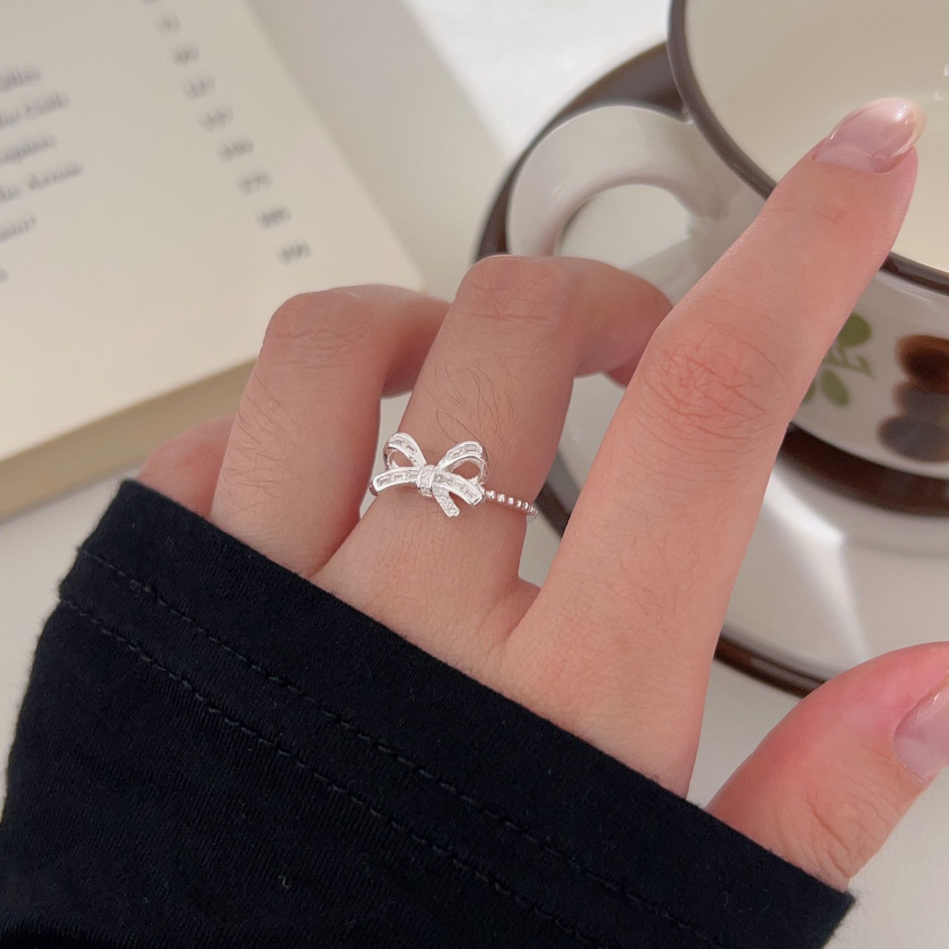 Yinlan S925 Sterling Silver Inlaid Bow Ring Women's Niche Fashion Simple Small Fresh Open Ring Trend