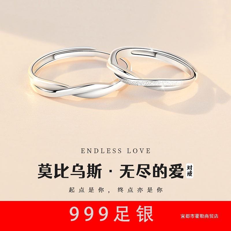 Mobius Strip Couple Ring 999 Sterling Silver Ring Pair Niche Design Valentine's Day Gift for Female Boyfriend
